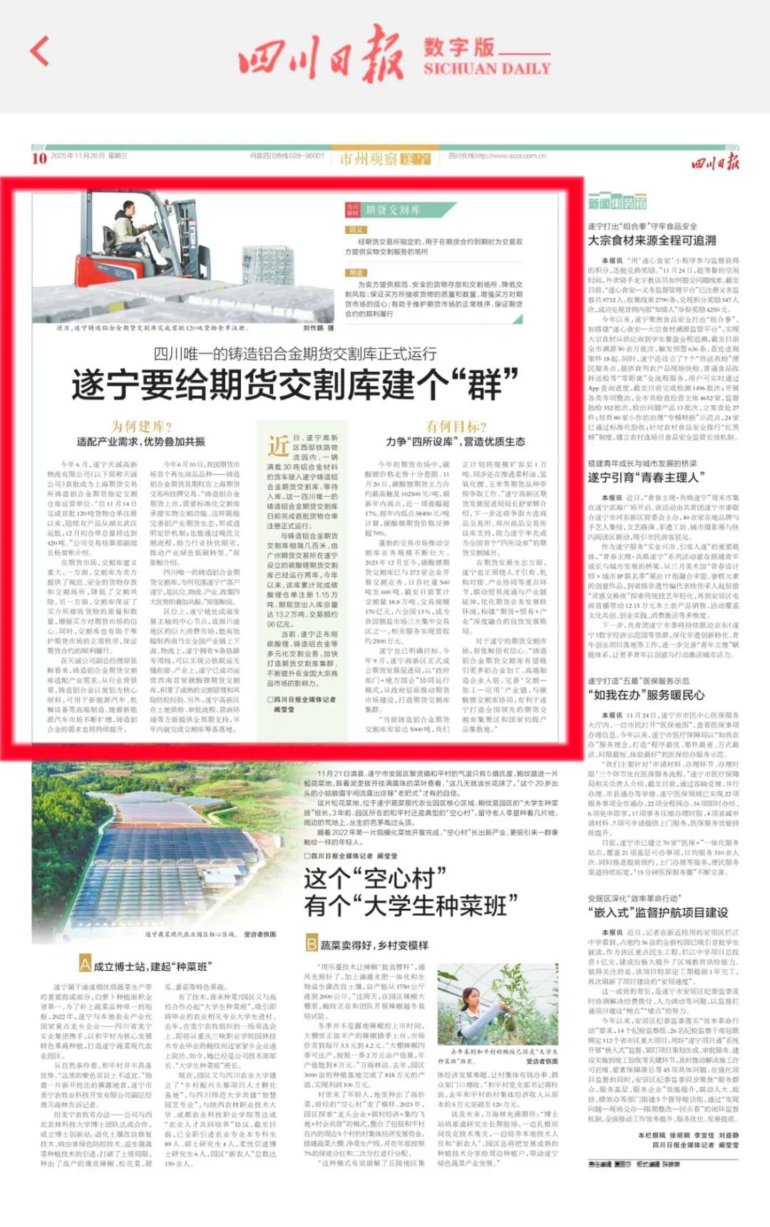 - 《四川日报》关注|遂宁高新区:四川唯一铸造铝合金期货交割库正式运行2025-11-26