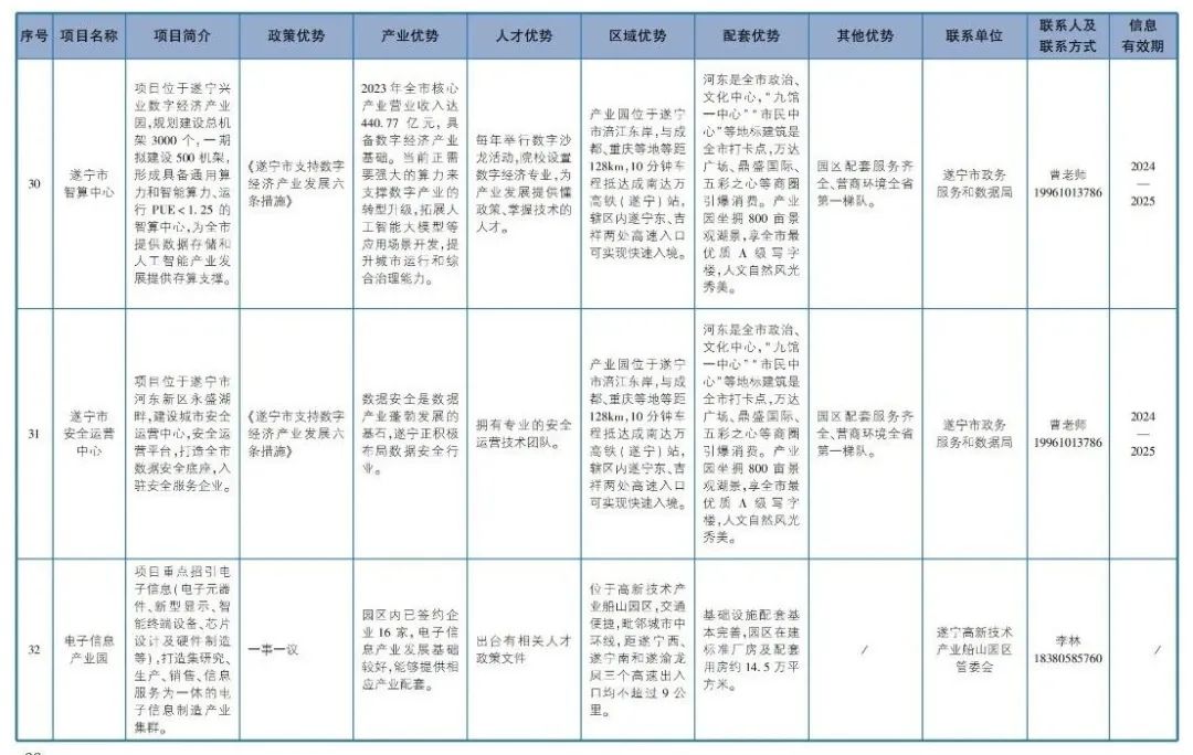 2024四川省数字经济发展招商引资推介清单(遂宁市部分)