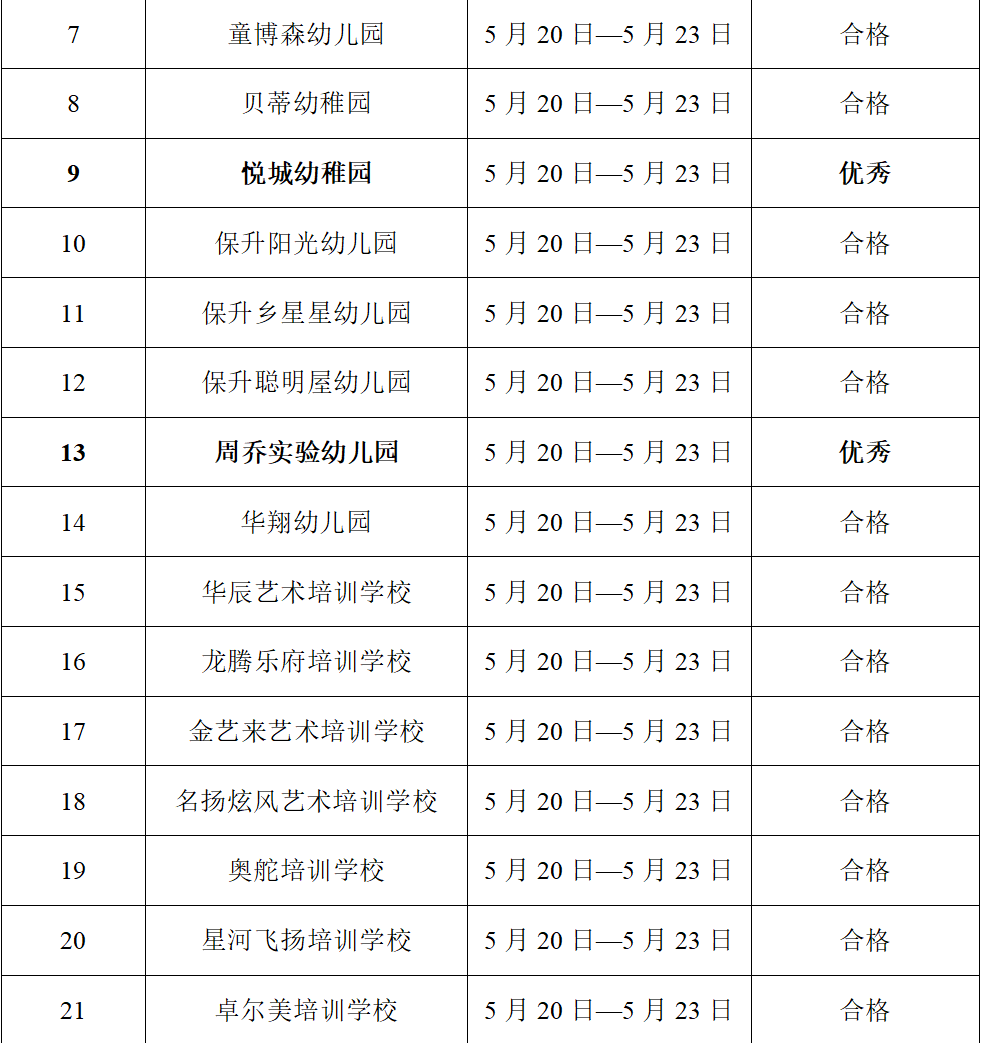 为进一步规范民办学校办学行为,不断提高民办学校管理水平和教育教学质量,促进民办学校健康发展,根据《中华人民共和国民办教育促进法》有关规定及《遂宁市教育和体育局办公室关于做好2021年度民办学校年审工作的通知》(遂教体办函〔2022〕24号)要求,2022年5月20日—5月23日,社事群工局遴选相关领域人员组成评审组,采取查阅资料、实地查看、座谈师生、听取汇报等方式对园区内21所民办学校(含校外培训机构)2021年度各项工作进行评审,对照《遂宁市民办学校办学质量评估细则》综合评分,初步形成民办学校年审评定结果。现将评定结果公示如下,如有异议,请拨打监督电话(0825—2663076)。