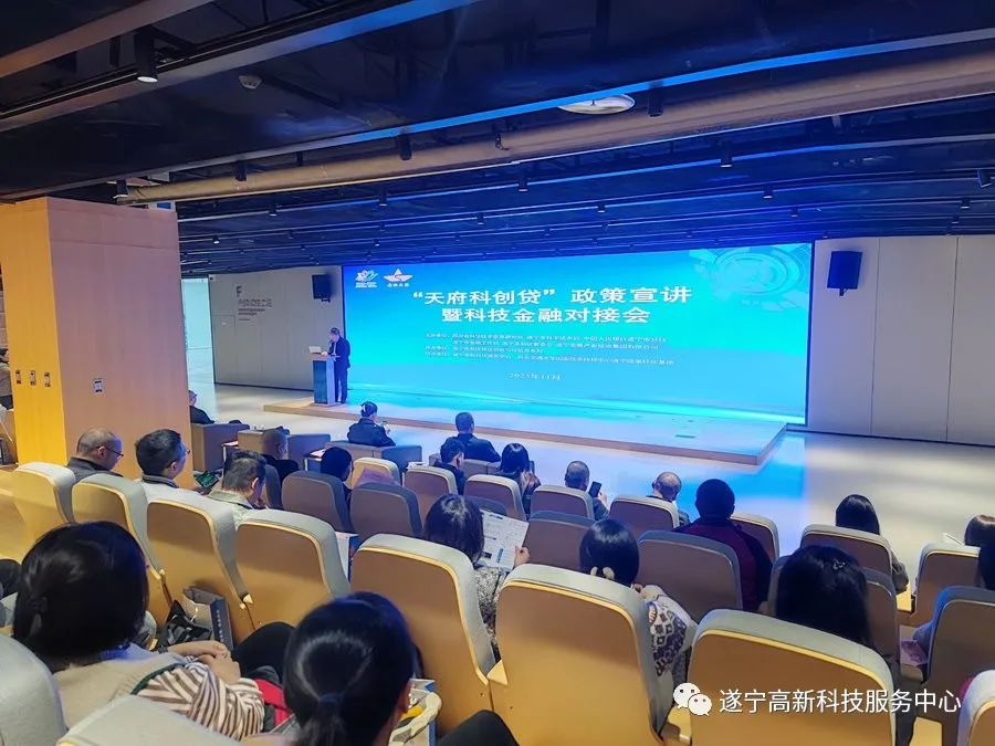 近日,遂宁市“天府科创贷”政策宣讲暨科技金融对接会在遂潼涪江创新创业创造中心召开。本次会议由四川省科学技术信息研究所、遂宁市科技局、中国人民银行遂宁市分行、遂宁市金融工作局、遂宁高新区管委会、遂宁发展产业投资集团有限公司主办,遂宁高新区科技创新与经信商务局承办。