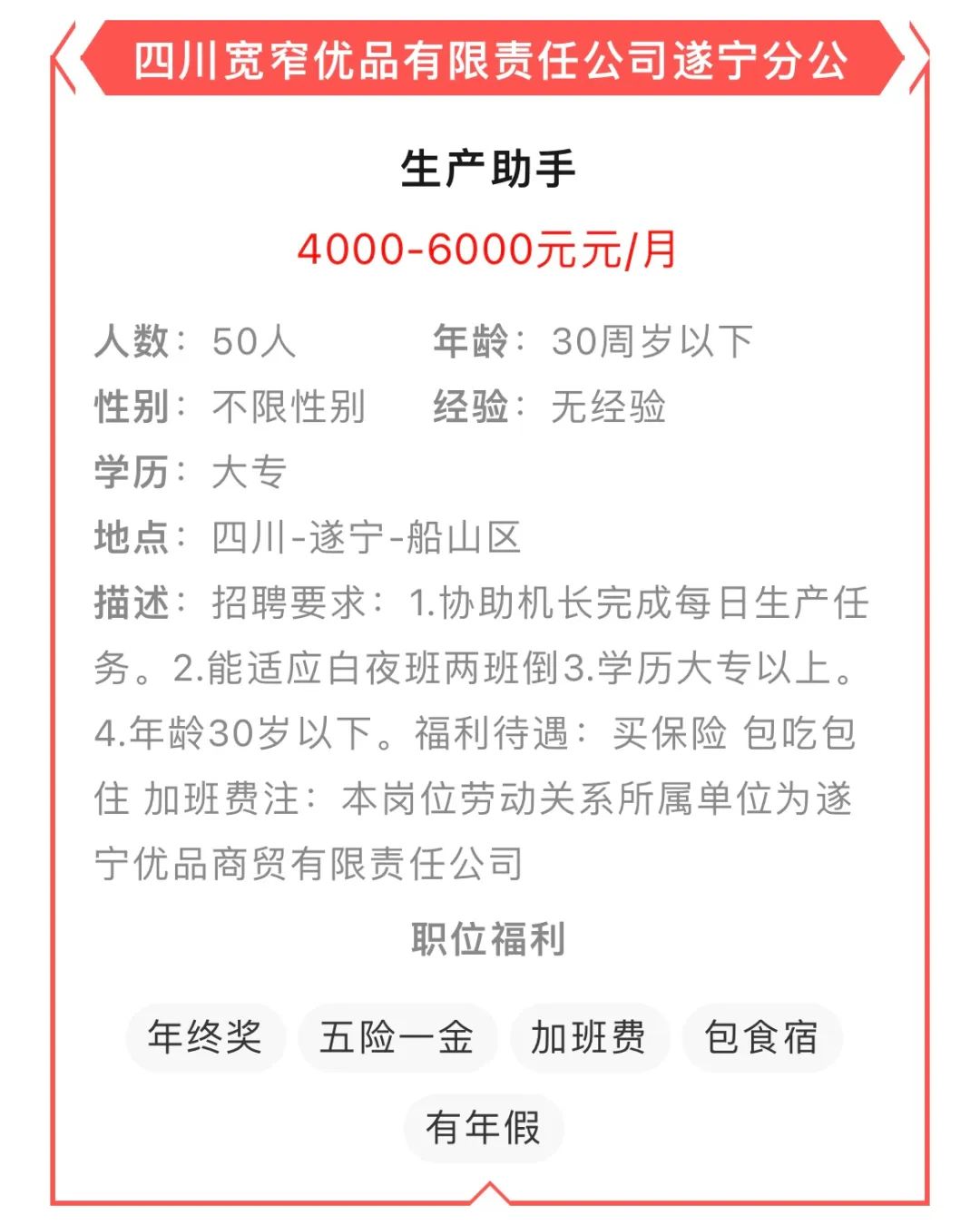 【企业招聘】宽窄优品大量招人啦!有五险,包食宿!