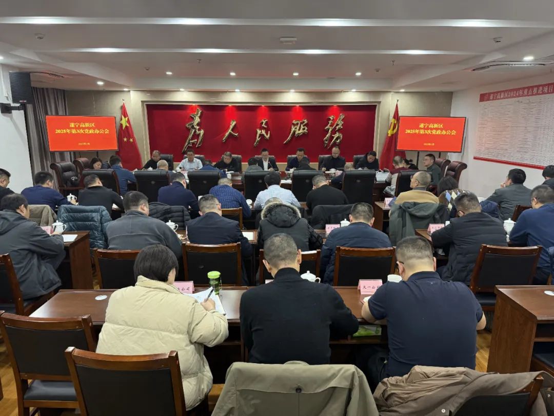1月7日,遂宁高新区召开2025年第3次党政办公会,传达学习中央、省委和市委经济工作会议精神,研究园区贯彻意见,安排部署重点工作。遂宁高新区党工委副书记、管委会主任唐统主持会议并讲话。园区领导黄俊宁、赵武军、谭勇、冉茂连、李忠海、徐毅参加会议。