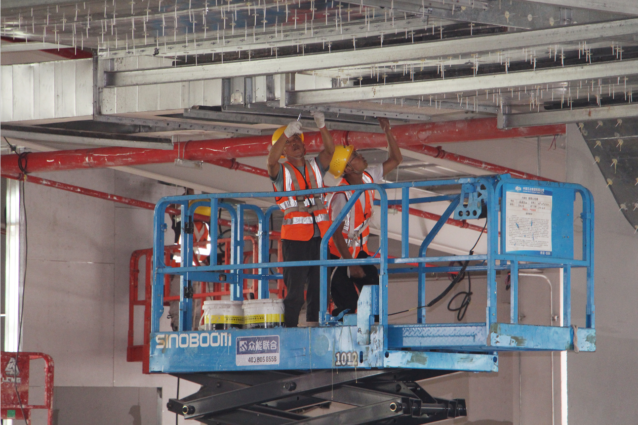 以日为计,分秒必争。整个施工现场,300名施工人员正有条不地忙着室内装饰装修、机电安装和幕墙安装。目前,整个项目已完成80%