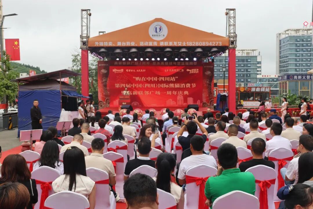9月28日上午,“购在中国·四川站”第四届中国(四川)国际熊猫消费节暨高新联邻广场一周年庆典在遂宁高新区热闹举行。联邻广场推出的各类优惠促销活动,吸引了众多市民前来消费娱乐,现场人头攒动,洋溢着节日的喜庆氛围。