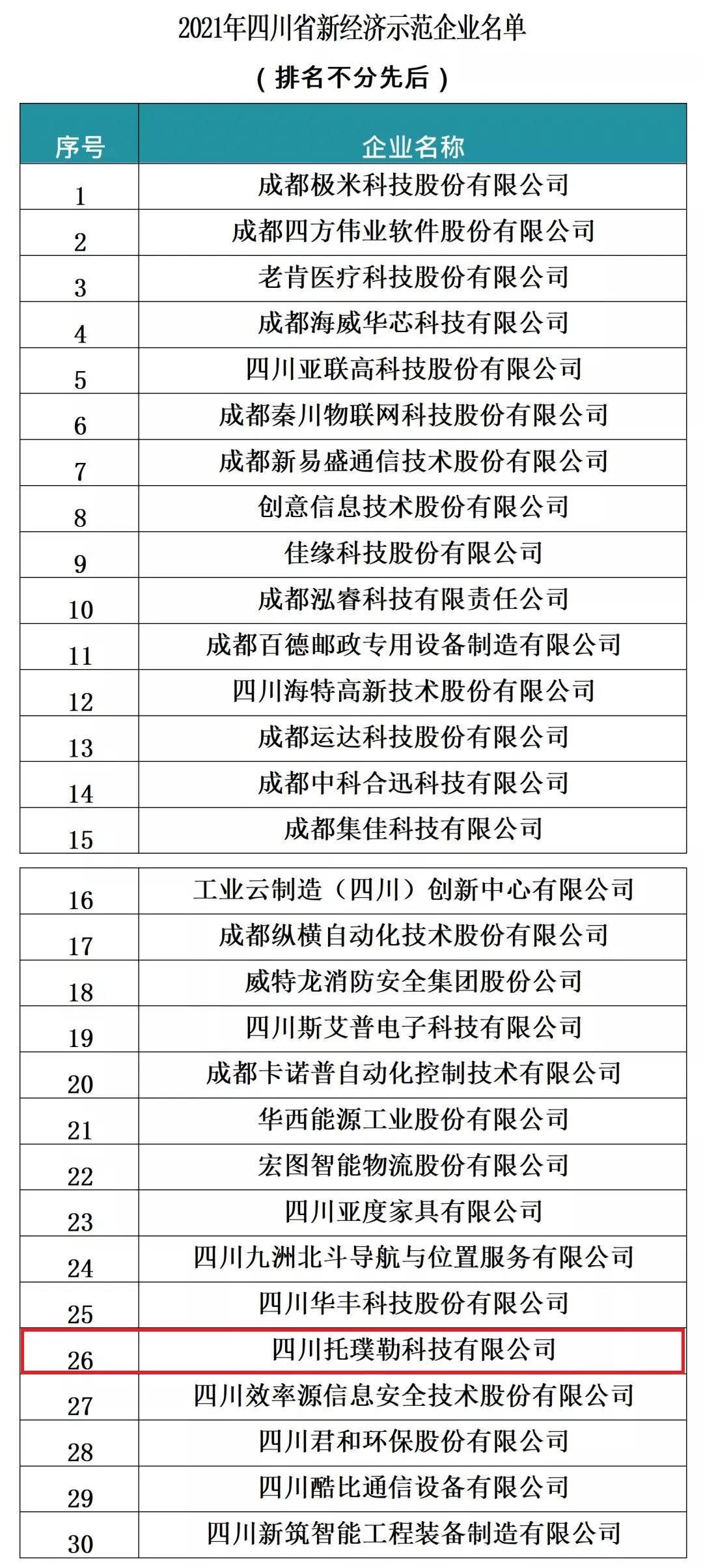 四川省经信厅、省财政厅近日公布了2021年四川省新经济示范企业名单,评出全省30家新经济示范企业,遂宁高新区四川托璞勒科技有限公司榜上有名。
