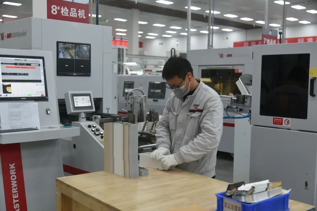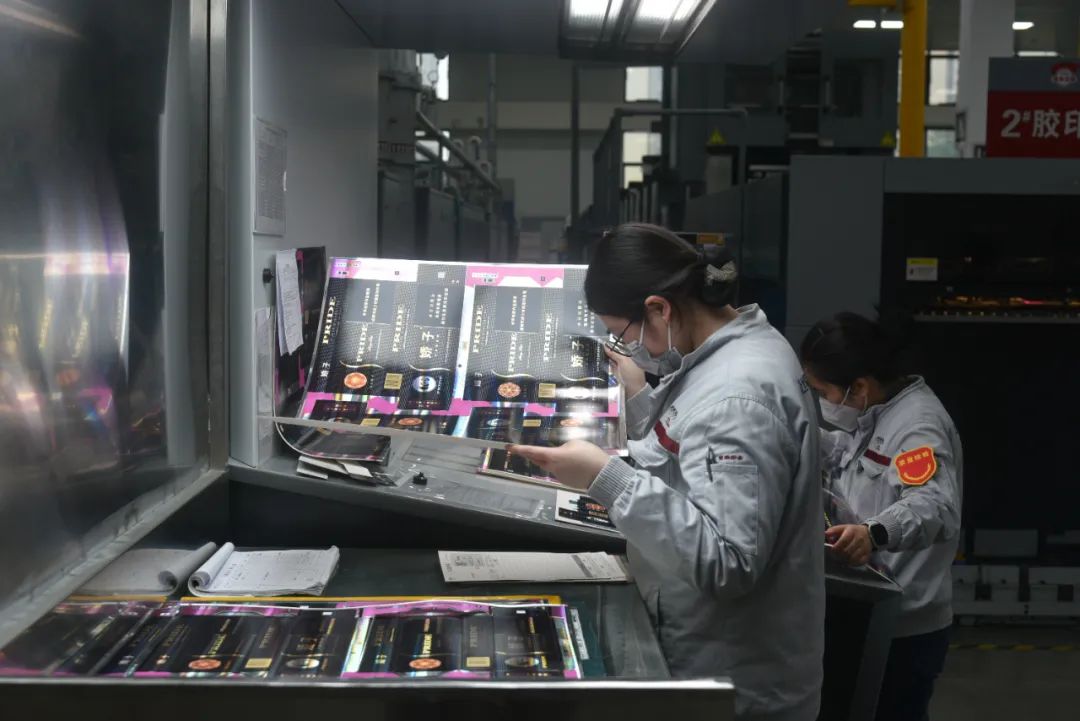 车间内,两条生产线“各司其职”,单张纸依次经过胶印、丝印、喷码、烫金、模切、检品等环节;卷筒纸则在凹印生产线上,完成从凹印到检品的一系列工序。“目前我们正在全力冲刺2月订单。”遂宁宽窄印务商标制造中心副主任唐丹介绍,2月订单主要供应四川中烟、湖北中烟、江西中烟的卷烟工厂,需求量约33万箱,目前已完成40%。她透露,一季度订单需求稳中有升,同比增长13%。为完成生产目标,胶印、凹印、复合等生产条线全面运转,750余名员工已全部到岗。