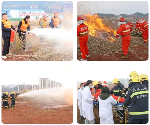 根据火灾发生情况,遂宁高新区先后组织了义务扑火队、半专业扑火队、西宁派出所和卫生院、消防大队专业队伍赶赴现场开展扑火、救援工作。通过各队伍间的紧密协作,大火被彻底扑灭,实战演练取得圆满成功。