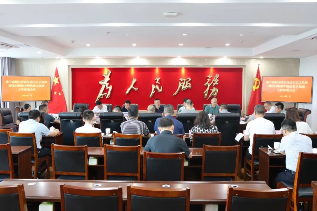 7月1日,遂宁高新区召开群众身边不正之风和腐败问题集中整治重点领域工作推进会。遂宁高新区党工委副书记、管委会主任唐统主持会议并讲话。园区领导李戈亮、陈建明、谭勇、李忠海参加会议。