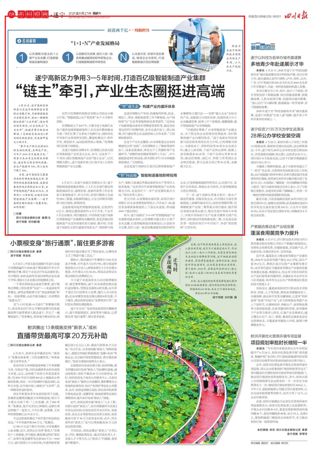 这也是遂宁高新区打造百亿级智能制造产业集群的主要打法——发挥“链主企业”在标志性产品、创新能力方面的优势,加速形成大中小企业融通发展、延伸上中下游链条,建圈强链,提升智能制造产业发展能级。