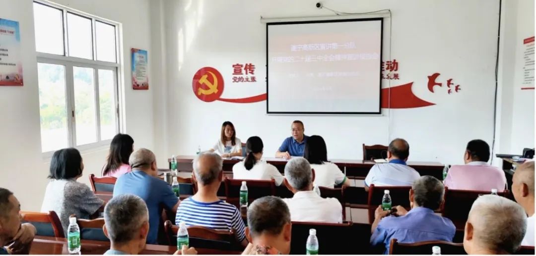 按照工作安排,9月20日,遂宁高新区宣讲第一分队到西宁街道兰井村宣讲党的二十届三中全会精神。第一分队负责人、党政办公室主任何亮作宣讲报告。兰井村党员、群众代表约30人参加宣讲。