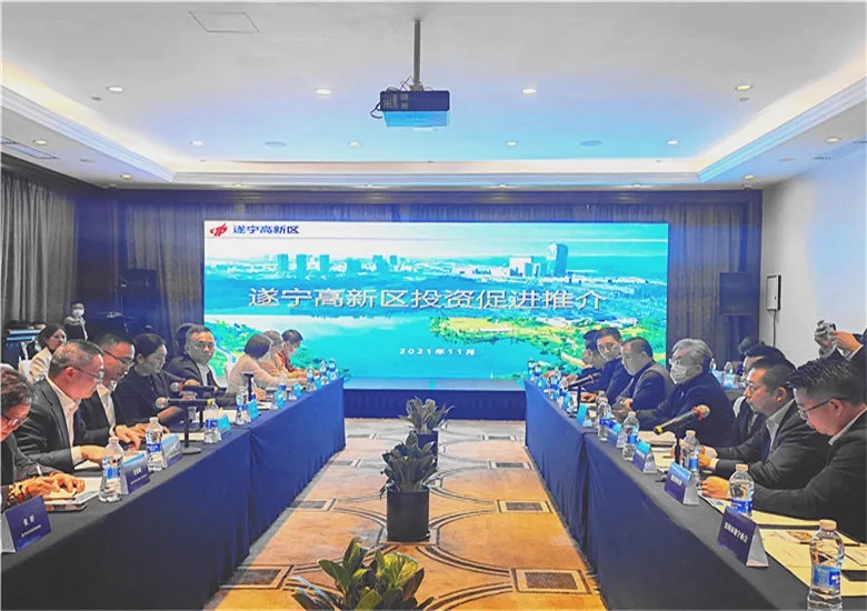 近日,由遂宁高新区管委会、遂宁经开区管委会共同召开的遂宁市2021年制造业招商引资“百日攻坚”行动暨电子信息产业“投资恳谈会”在广东深圳举行。会议邀请上达电子、诚亿兴科技等30余家优秀企业参加。遂宁高新区党工委副书记、管委会主任唐统参加会议并为遂宁高新区作推介。