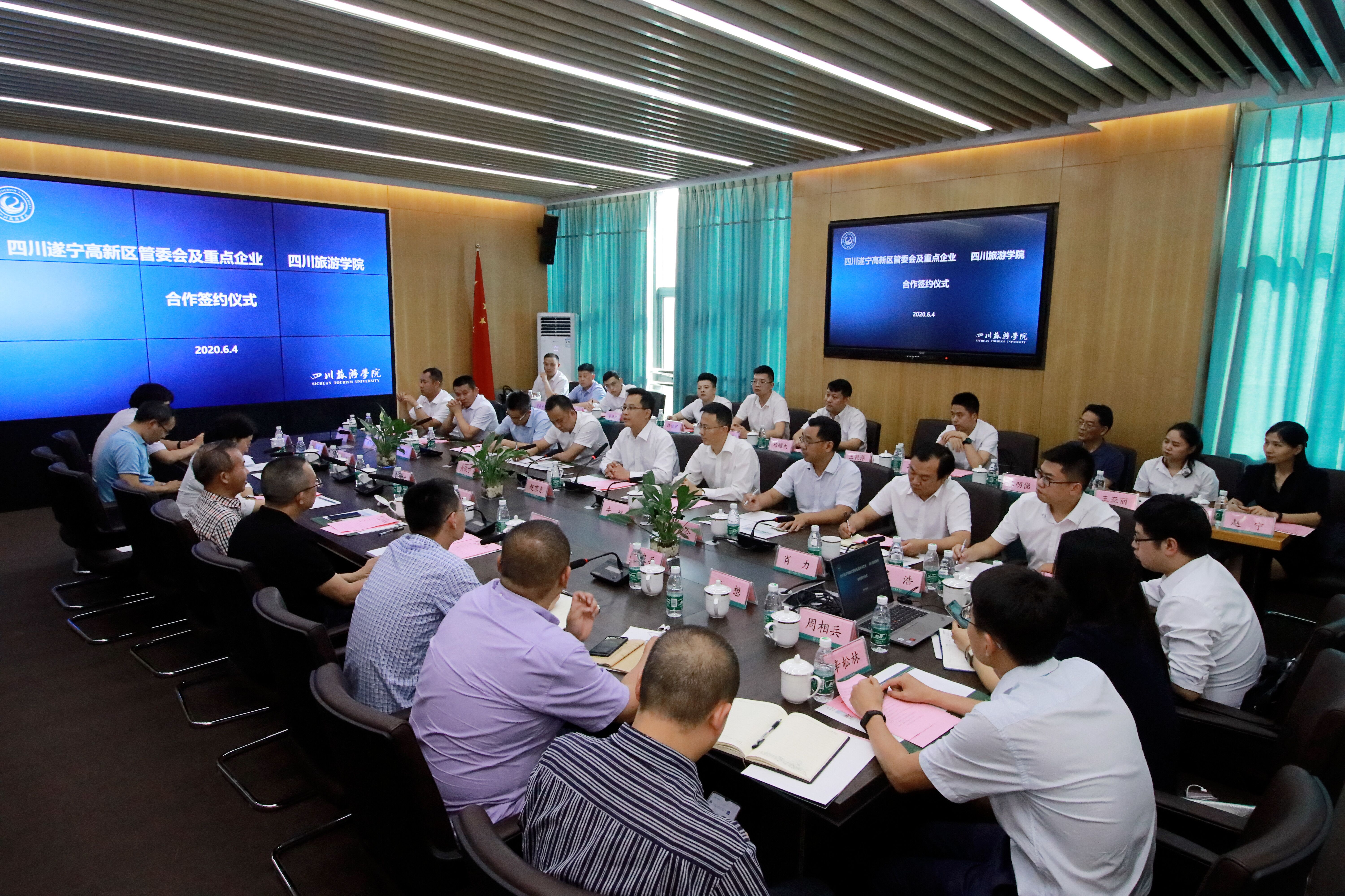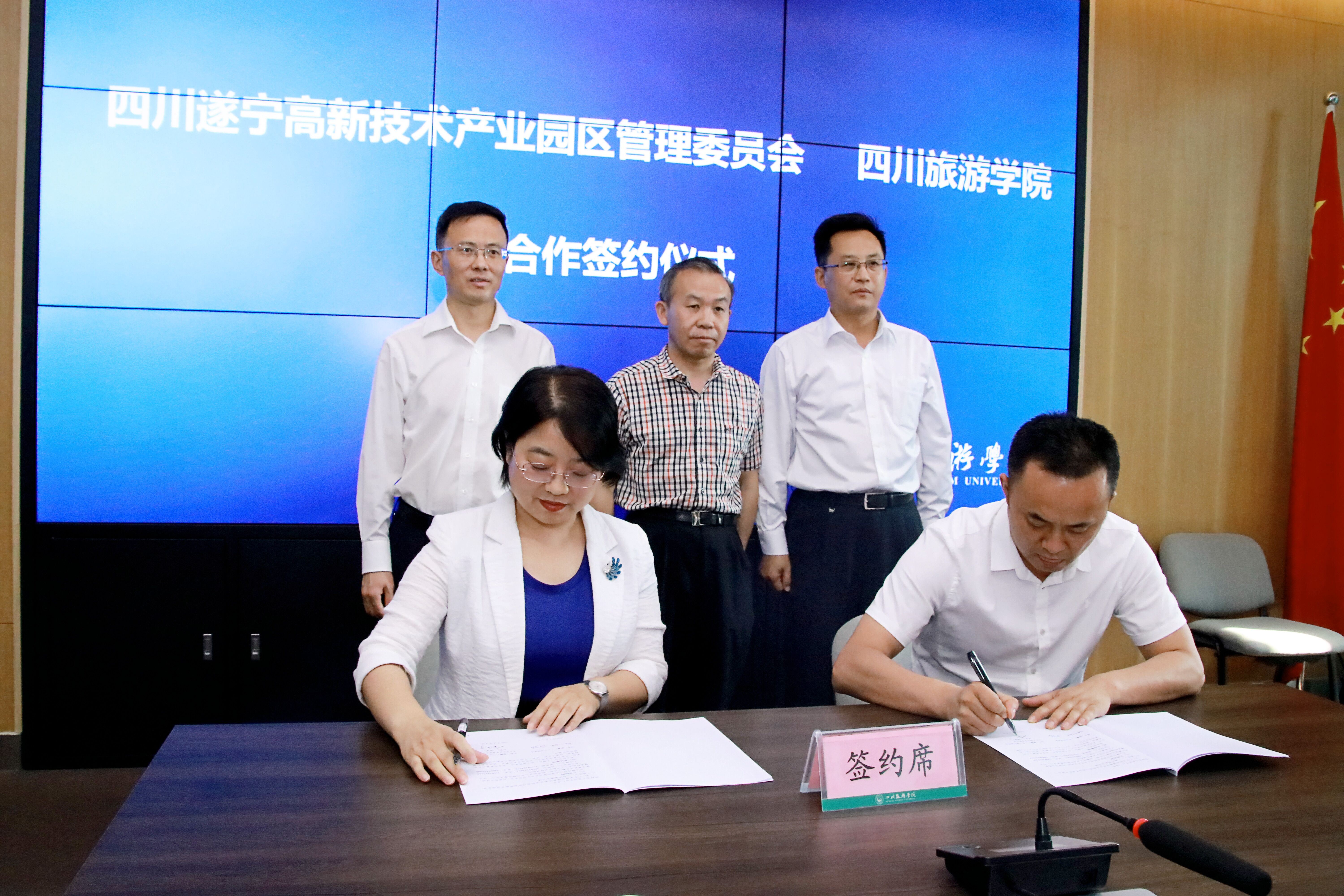 四川旅游学院还与遂宁高新区重点企业四川美宁食品、中豪粮油、遂宁绿苗餐饮、遂宁启迪万博、遂宁猪八戒企业孵化管理签订了产学研协同创新合作协议,共建"天府菜油研究推广中心"、"特种食品技术研发中心"、"绿色中央厨房营养餐研发中心"、"西南川菜研发中心"、"校外创新创业实践基地"、"八戒校园工厂——在线实习实训平台"。
