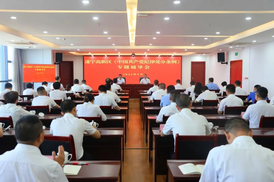 5月23日,遂宁高新区召开《中国共产党纪律处分条例》专题辅导会。遂宁高新区党工委副书记、管委会主任唐统主持会议并讲话。会议特邀市监委委员吕春峰作新修订《条例》解读。园区领导李戈亮、陈建明、黄俊宁、赵武军、谭勇、冉茂连、李忠海参加会议。