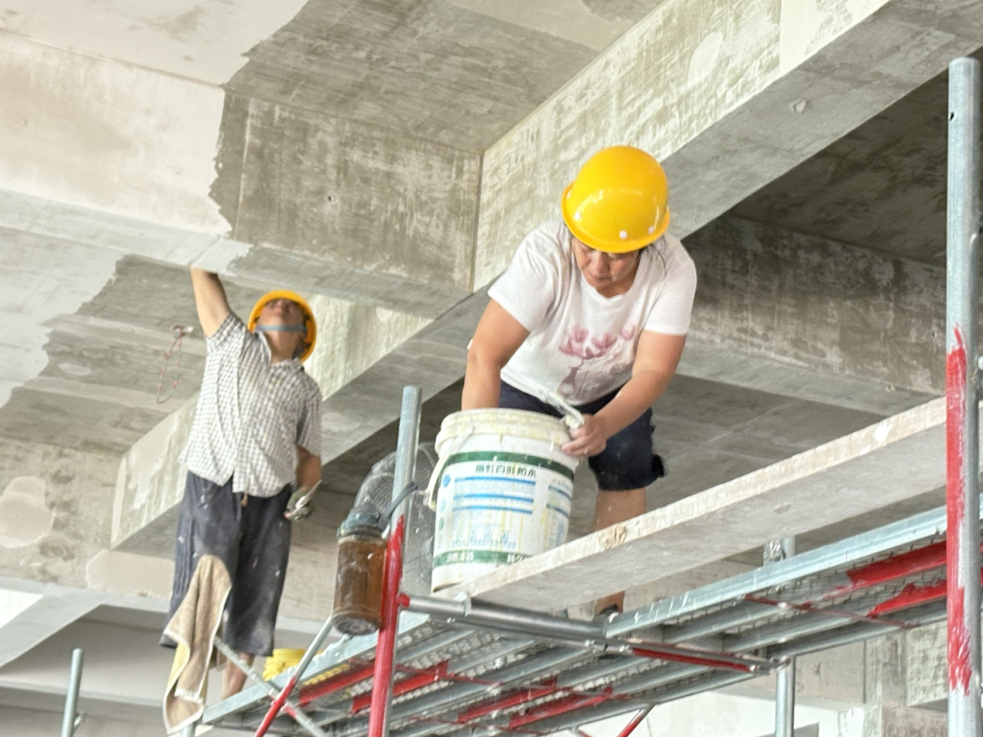 谈及项目推进难点,吕刚坦言:“工期紧、任务重是最大挑战。”自3月开工以来,项目方通过优化施工流程、增派技术骨干和施工人员,将现场作业队伍扩充至150人。针对近期持续高温,项目实行“错峰施工”模式,每天5点至9点、18点至22点组织施工,避开正午高温时段。同时,现场还配备了藿香正气液、清凉油等防暑药品,24小时供应茶水,全方位保障工人的身体健康与生命安全。