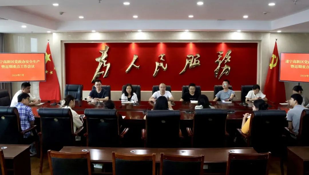 7月20日,遂宁高新区党政办公室召开安全生产暨近期重点工作会议,传达学习习近平总书记近期重要指示批示精神,省委、市委有关工作要求,安排部署重点工作。