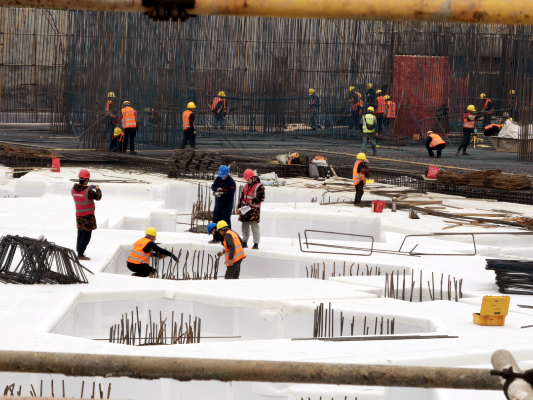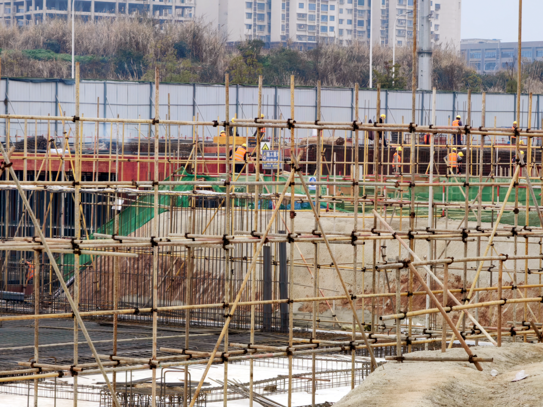 当前工人正进行综合服务楼的地下室建设作业,在建基坑总体深度为5.4米,局部最深达7.5米,且紧邻交通主干道,地下市政管网线复杂。如何安全抢抓工期,确保项目高质量建成早投用?为此,施工方改变传统的开挖放坡形式,采用旋挖桩支护新工艺,即基坑旋挖后以桩为支撑,直接进行混凝土浇筑,将整个路基保护起来,以此减少对主干道的影响,确保行人安全通行。此外,在大楼修建过程中,项目还采用更加环保节能的高分子新材料,保温性更强、防水性更好。