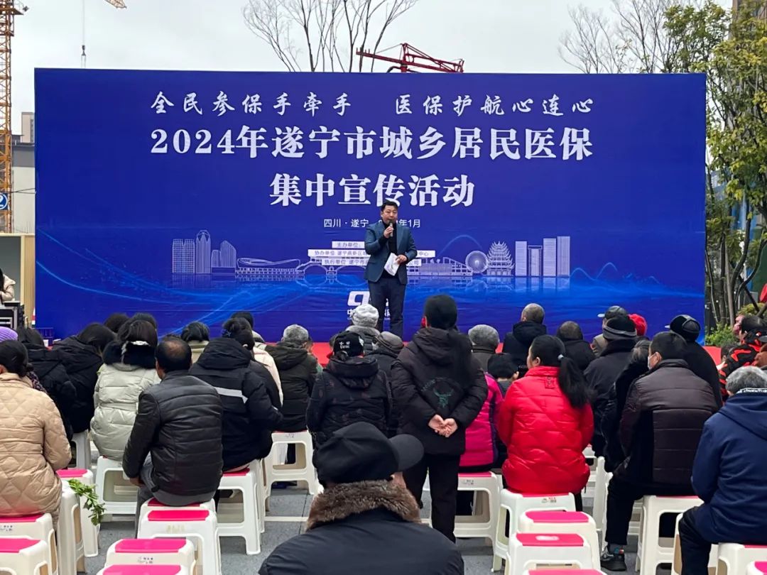 1月17日,遂宁高新区热闹非凡,一场以“全民参保手拉手 医保护航心连心”为主题的2024年遂宁市城乡居民医保集中宣传活动吸引了数百名群众参与。大家一边观看节目,一边了解城乡居民医保的相关政策。