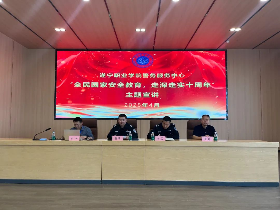 为深入贯彻落实总体国家安全观,引导高校师生深入了解国家安全的内涵和重要性,牢固树立国家安全意识,根据系列宣传活动方案,4月10日下午,遂宁高新公安分局相关部门在遂宁职业学院开展“4·15”全民国家安全教育日主题宣讲活动,法制大队副大队长、遂宁职业学院法制副校长、警务服务中心驻校民警唐鹏;学院保卫科科长李铭分别作主题宣讲。
