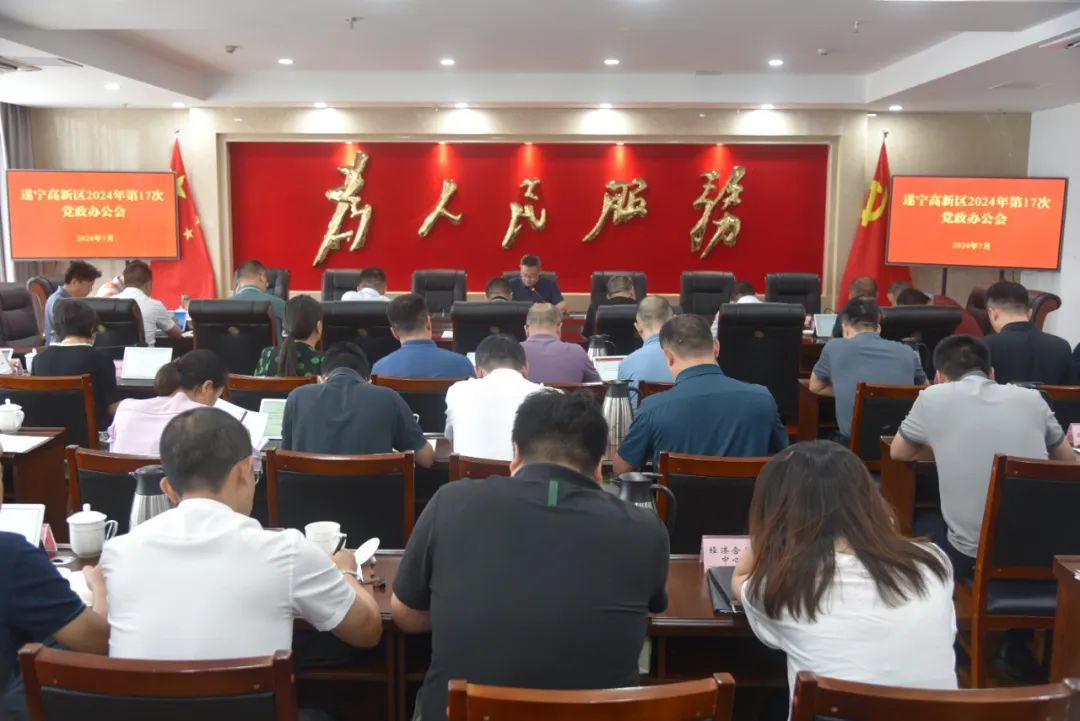 7月19日,遂宁高新区党工委副书记、管委会主任唐统主持召开2024年第17次党政办公会,传达学习近期中央和省委、市委有关会议精神,研究园区贯彻落实意见,安排部署近期重点工作。园区领导陈建明、黄俊宁、赵武军、谭勇、冉茂连、李忠海、徐毅参加会议。