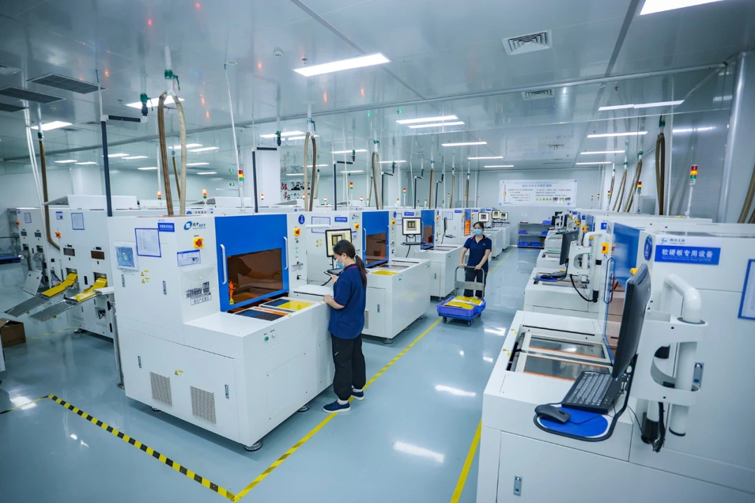 3月1日,在四川上达电子有限公司1号厂房柔性电路板生产线上,智能设备高速运转,工人们有序忙碌,正在加紧赶制来自华为的订单。