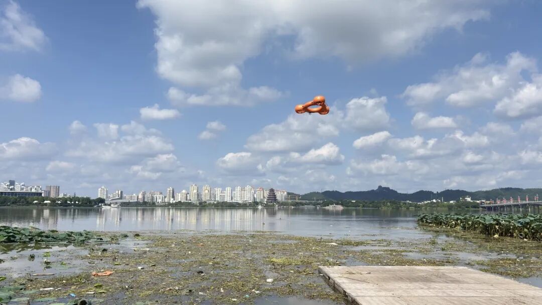涪江水面,一架橙色无人机疾速掠过,在操作员指令下精准悬停、追踪学员、护航水上训练……近日,在遂宁市水上运动学校的演练现场,一架代号“橙飞侠”的具身智能水上救援无人机与运动员们同步训练,成为江面上一道科技感十足的风景。这是遂宁高新区培育的本土企业——四川云图世景智慧科技有限公司与遂宁水上运动学校联合开展的水上应急演练,也是全省首批空域试点企业探索“科技救援”的生动实践。