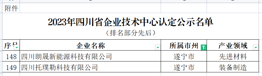 2023年7月17日,四川省经济和信息化厅等部门联合发布通知,经审定,174家企业进入2023年四川省企业技术中心拟认定名单,四川朗晟新能源科技有限公司、四川托璞勒科技有限公司成功上榜拟认定名单。