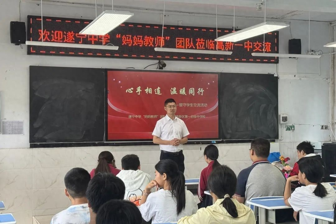 为深化校际协作,赋能留守学生成长,近日,遂宁中学教师发展中心副主任罗召莉带队赴遂宁高新区第一初级中学校,联合开展“校际携手·温暖同行”留守学生交流活动。活动在共青团遂宁市委、共青团遂宁高新区委组织的“童伴妈妈”倾情助力下,通过文化浸润、互动实践与情感联结,搭建跨校育人新平台。