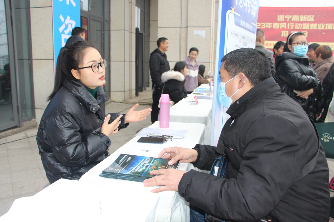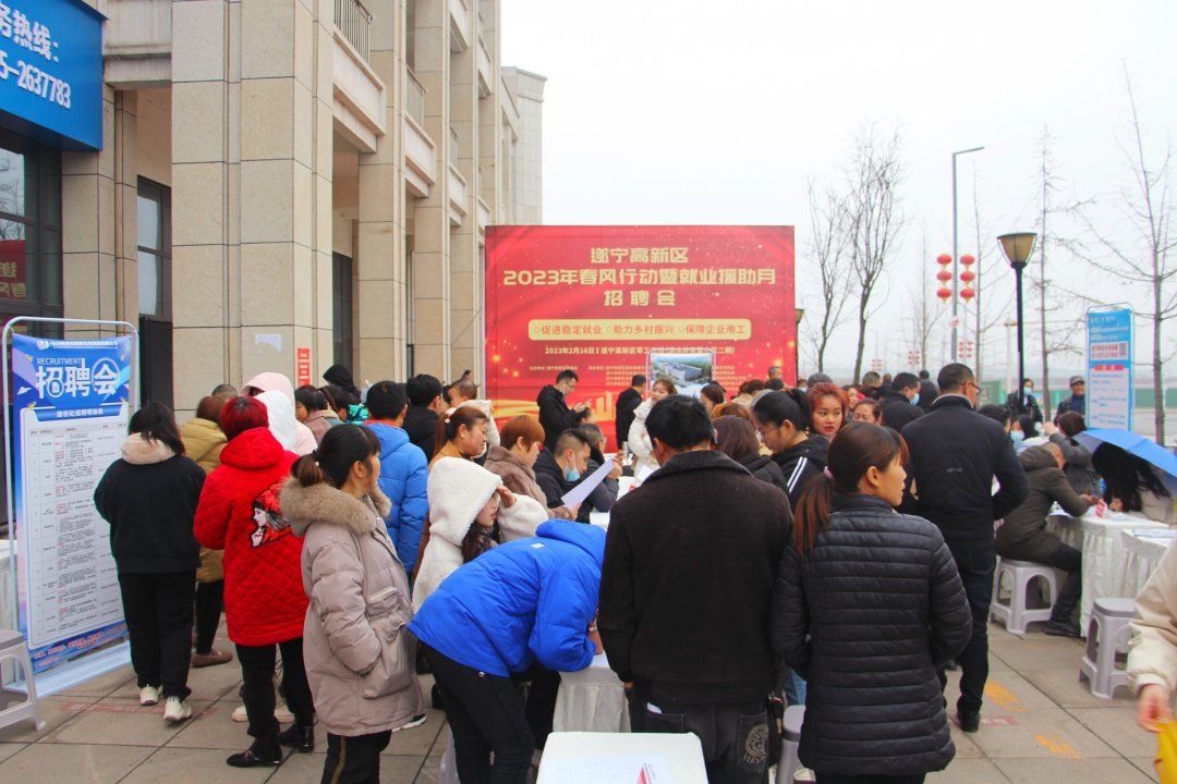 春风至,人气旺。2月16日,遂宁高新区2023年春风行动暨就业援助月招聘会在高新区零工市场举行,集中帮扶农民工、退役军人、就业困难人员等劳动者就业创业,拓宽群众就业渠道。遂宁高新区党工委委员、管委会副主任庞博参加指导此次招聘会。
