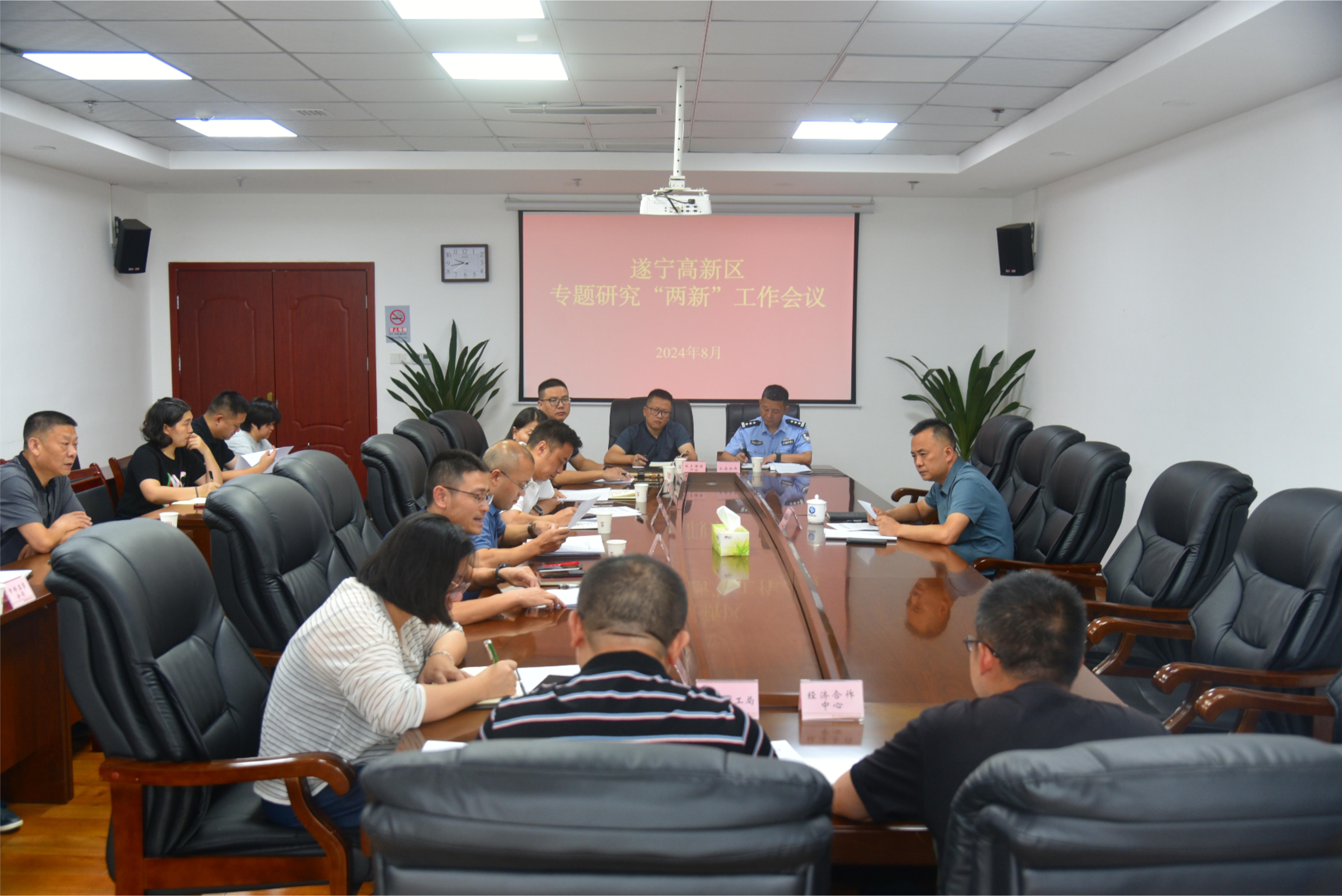 8月14日,遂宁高新区召开会议,专题研究“两新”工作,听取园区《推动大规模设备更新和消费品以旧换新实施方案》及“两新”项目储备情况,研究部署下步重点工作。遂宁高新区党工委委员、管委会副主任黄俊宁主持会议并讲话。园区党政办、党群部、发改统计局、财政金融局、科经商务局、建设交运局、社事群工局等部门负责人参加会议。