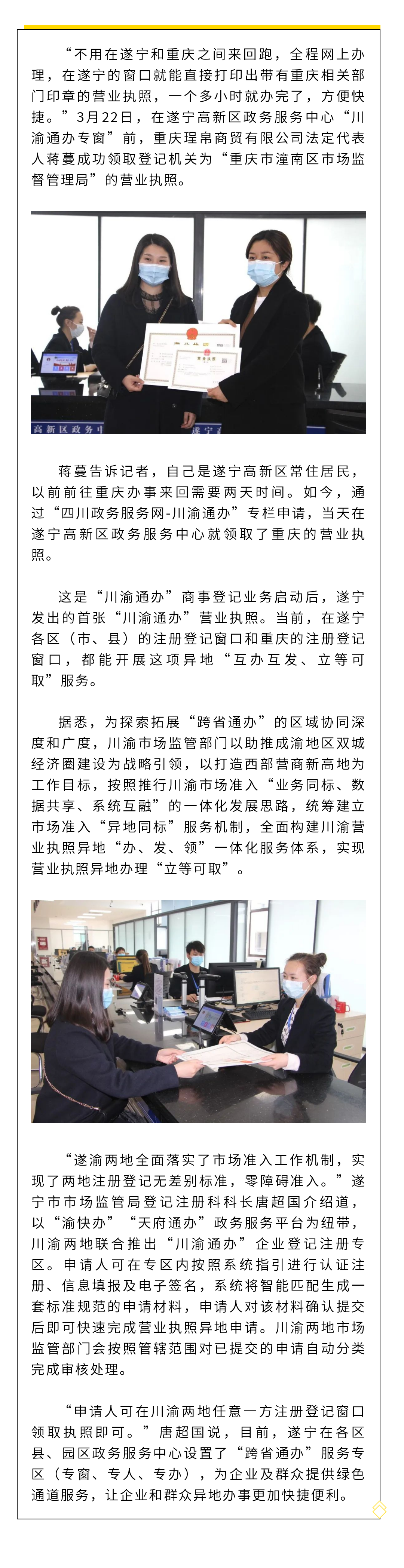 互办互发 立等可取 遂宁高新区发出全市首张“川渝通办”营业执照