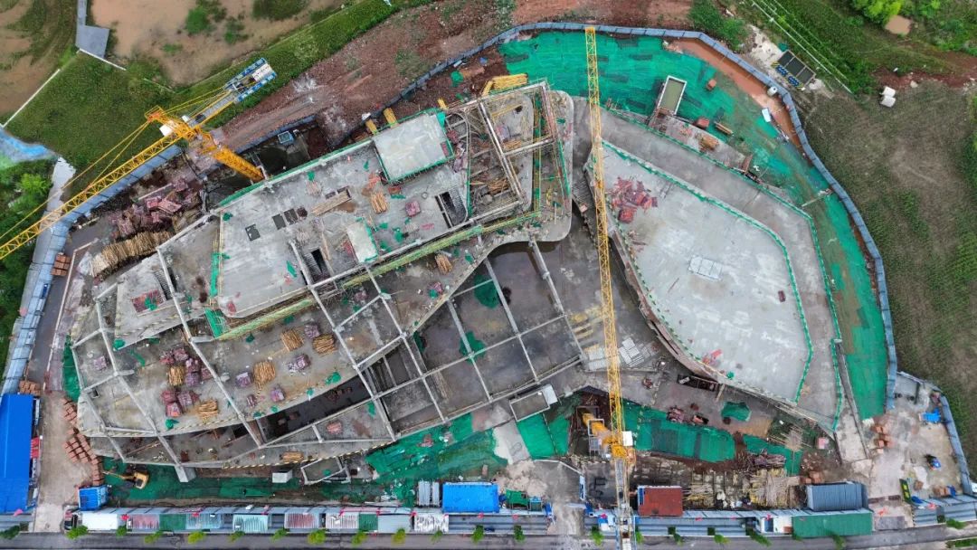 “在施工过程中,我们不断优化结构设计,采用型钢混凝土柱梁,有效解决了项目高支模危险性大、施工工期长、节点复杂等一系列难题。”廖书龙说,后续还将通过屋面薄壳网架杆件拼接技术解决屋面弧边弧形的控制问题。