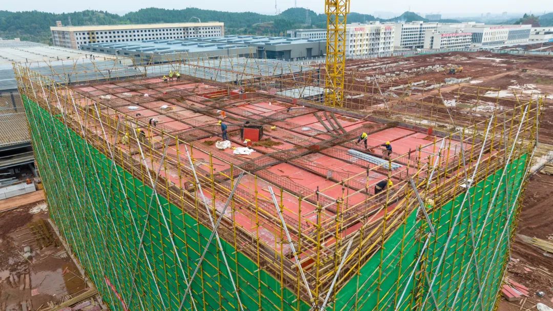 “1—3号厂房主体结构已基本完成,正在进行二次装修施工,其余楼栋主体结构施工已完成50%、二次结构施工完成30%。”项目生产经理陈俞霖告诉记者,目前,项目正按照时间节点顺利推进,有望明年6月所有建筑单体全部如期交付。