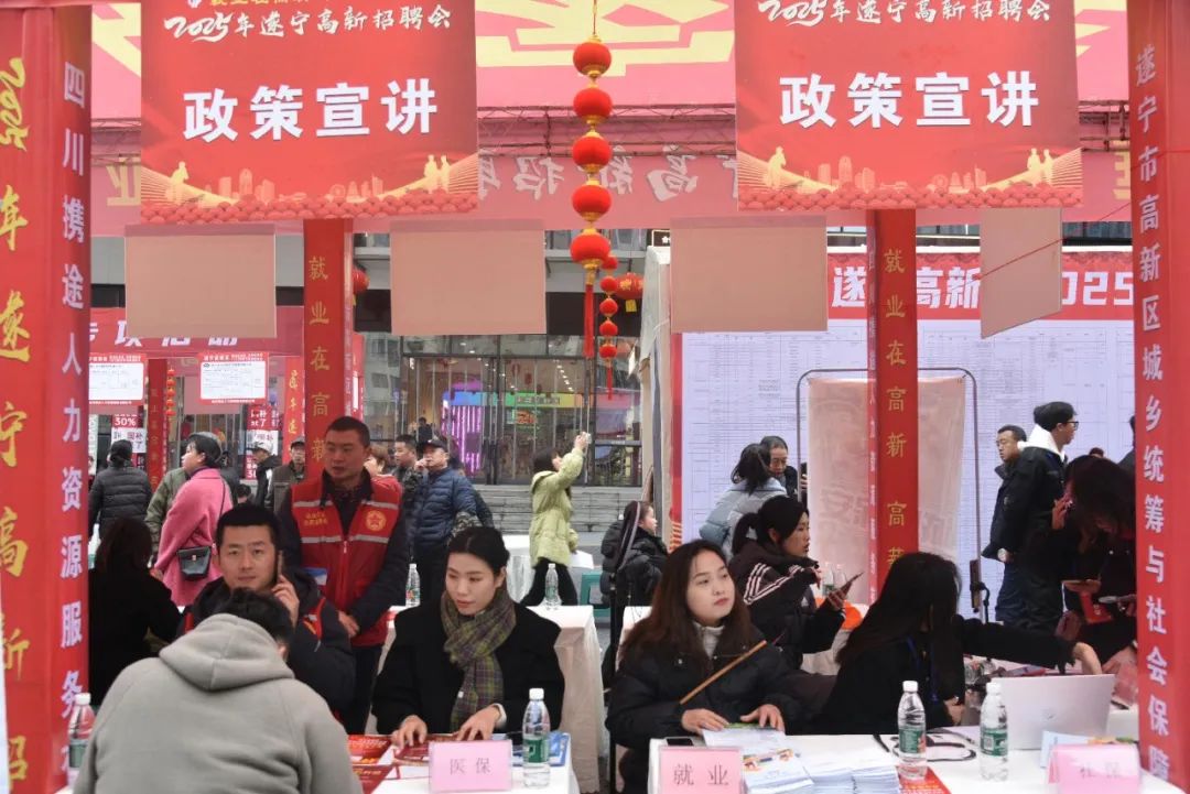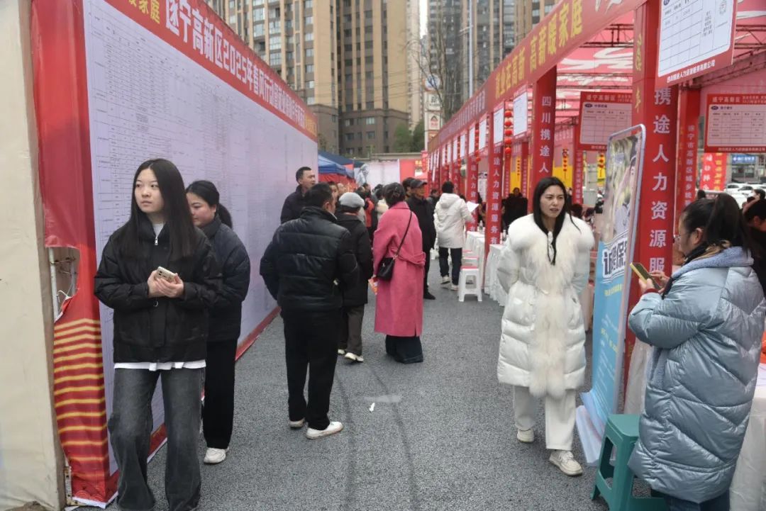 2月8日,在蛇年新春的暖阳下,联邻广场人潮涌动、热闹非凡,遂宁高新区2025年春风行动暨就业援助月专项活动在此火热举行。宽敞的场地内,各企业展位整齐排列,醒目的招聘海报色彩鲜艳,上面罗列着各类岗位信息,向求职者们发出诚挚的邀约。