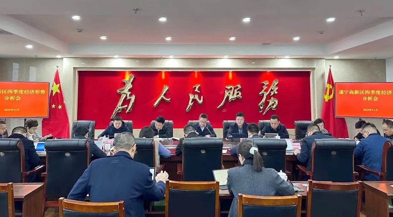 11月29日,遂宁高新区召开四季度经济形势分析会,贯彻落实全省11月经济运行情况月分析会议暨四季度经济形势分析会议及2023年全市四季度经济形势分析会议精神,分析研判当前经济运行情况和年末走势,安排部署下步重点工作。遂宁高新区党工委副书记、管委会主任唐统主持会议并讲话。园区领导李戈亮、王海军、黄俊宁、金欣、殷学梅参加会议。