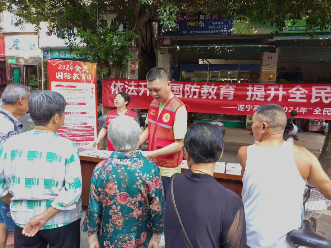 为全面贯彻党的二十大和二十届三中全会精神,进一步增强园区广大居民群众国防安全意识,激发爱国拥军热情,近日,遂宁高新区退役军人服务中心联合西宁街道和保升镇,开展以“依法开展国防教育 提升全民国防素养”为主题的全民国防教育月集中宣传活动。