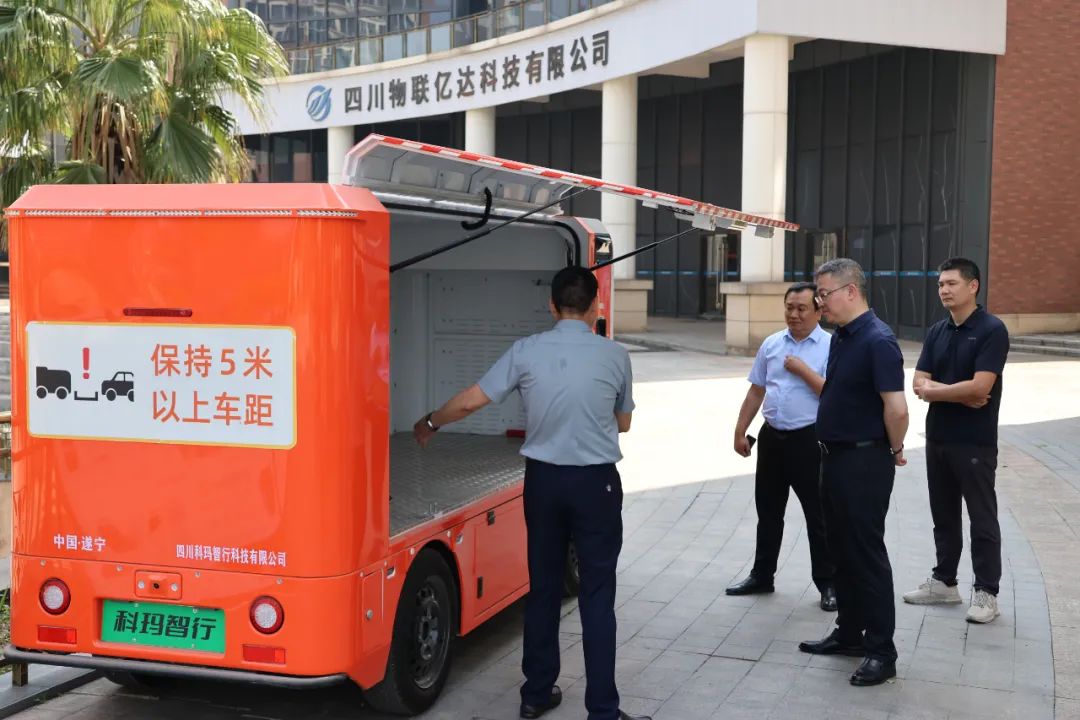 唐统先后来到四川佰思格新能源有限公司、遂捷通物流有限公司、西部云仓智能统配基地项目、顺意通国家众创空间、四川睿智延升新能源科技有限公司等地,详细了解企业安全生产“五预”系统运行情况,实地考察无人车在物流配送中的应用场景,听取重点项目进展汇报,了解物流产业人工智能场景应用及小微创新企业孵化情况,并就操作细节、技术落地、运营模式等与企业负责人深入交流。