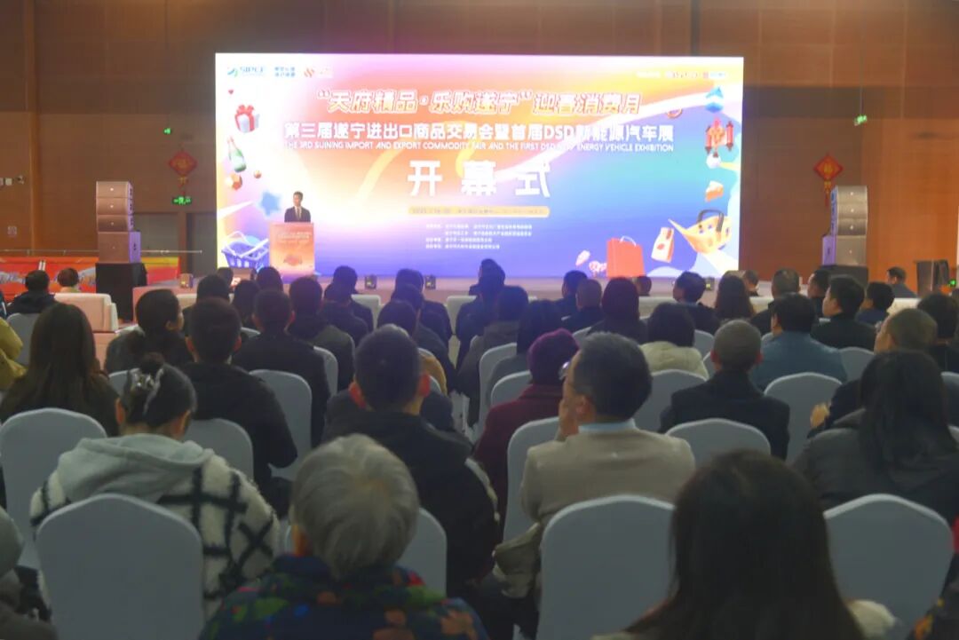 1月16日,第三届遂宁进出口商品交易会暨首届DSD新能源汽车展启动仪式于遂宁国际会展中心举行,副市长张智勇出席并宣布活动启动。