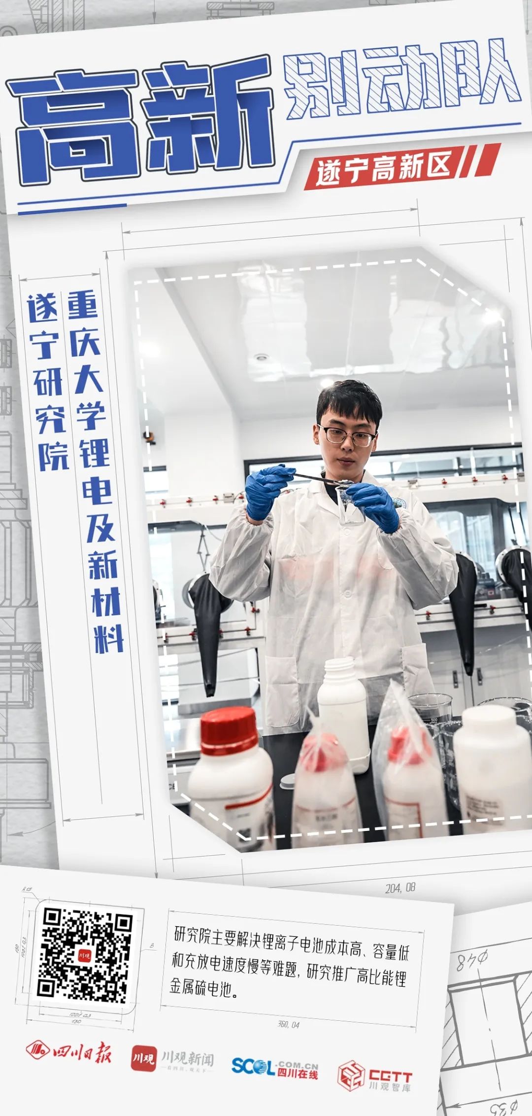 该研究院由重庆大学与遂宁市政府共建,于2021年落户遂宁高新区,依托重庆大学的科研优势,结合遂宁锂电产业,重点开展锂硫电池、先进锂负极、三元正极材料等的产业化研究。“研究院现在是两条腿走路,一方面升级现有锂电安全技术,另一方面瞄准下一代锂电池研发。”童成说。