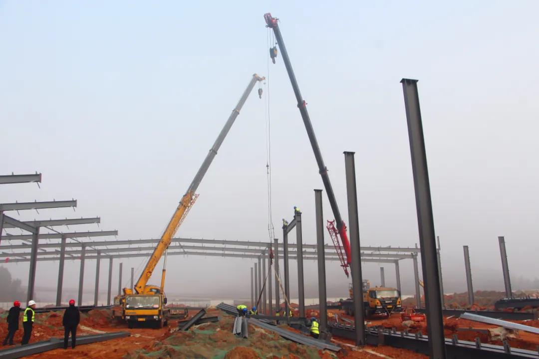 除了厂房钢结构安装,记者在施工现场看到,办公用房、倒班房、食堂也在加快推进建设,现场一片繁忙景象。“项目于2021年6月开工建设,采用统一规划、分两期建设的形式推进。目前,各个建筑单体正按计划有序推进,其中办公用房、倒班房、食堂主体结构将于春节前实现封顶。”魏斯勇介绍说,整个项目预计2022年5月底全面竣工、7月中旬全面投产。