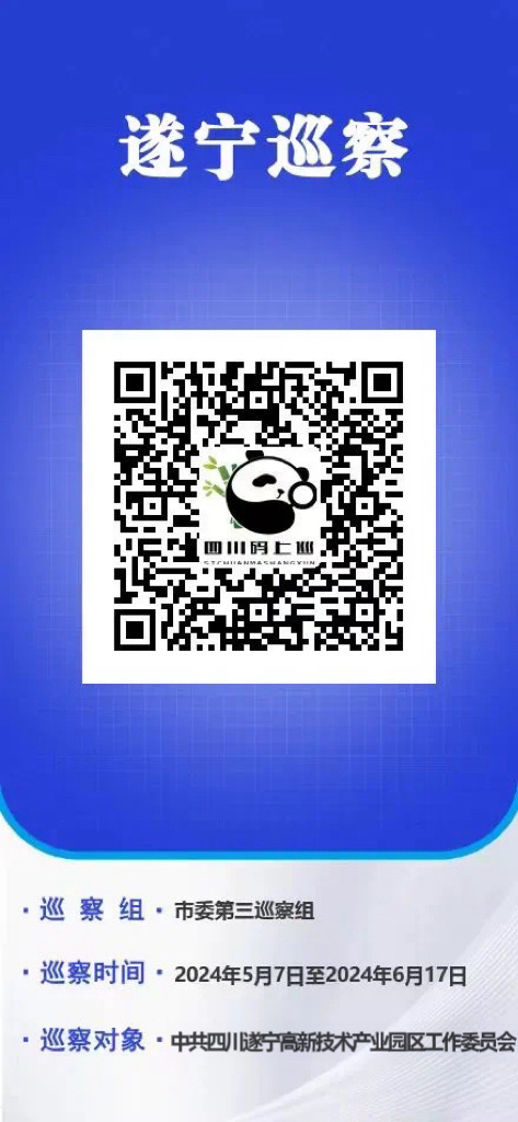 据悉,市委第三巡察组将对遂宁高新区党工委开展为期40天左右的巡察工作。巡察期间(2024年5月7日至6月17日),市委第三巡察组设专门值班电话:18011172016(受理时间为工作日9:00—18:00),电子邮箱:SNSWXCZ3@163.com。同时,在遂宁高新区管委会背后(建设银行对面巷子内)、遂宁高新区零工市场(凉水井小区三期)大门右侧、遂宁高新区政务服务中心(二区)背后巷子内设置巡察意见箱,并发布“四川码上巡”二维码。根据规定,市委第三巡察组主要受理涉及遂宁高新区党工委、管委会领导班子及其成员、委属各部门、直属各企事业单位主要负责人以及重要岗位领导干部问题的来信、来电、来访,重点是关于违反党的政治纪律、组织纪律、廉洁纪律、群众纪律、工作纪律和生活纪律等方面的举报和反映。
