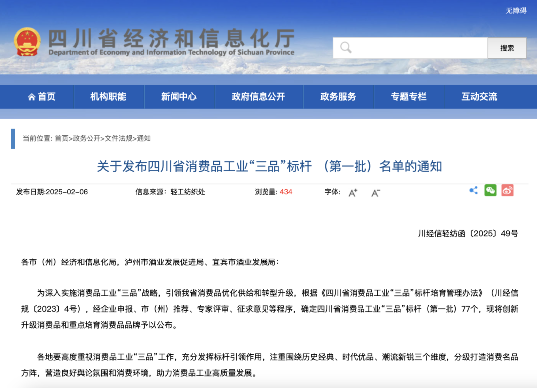 发布四川省消费品工业“三品”标杆 (第一批)名单
