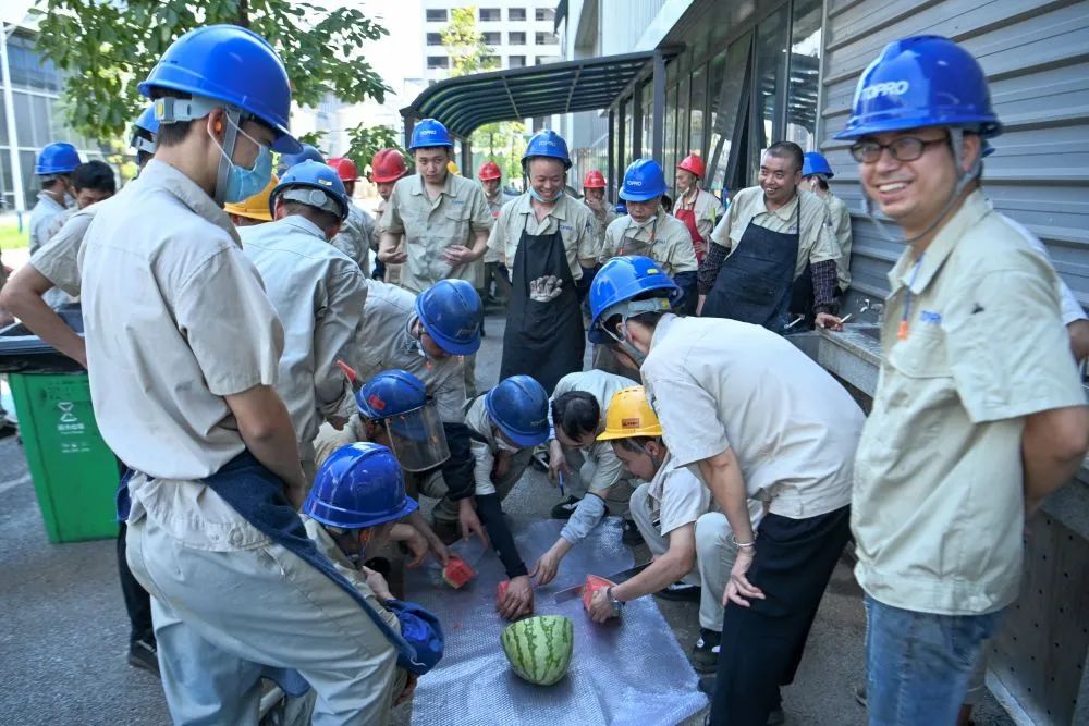 在四川托璞勒科技股份有限公司,员工在休息期间享用西瓜消暑。刘忠俊 摄