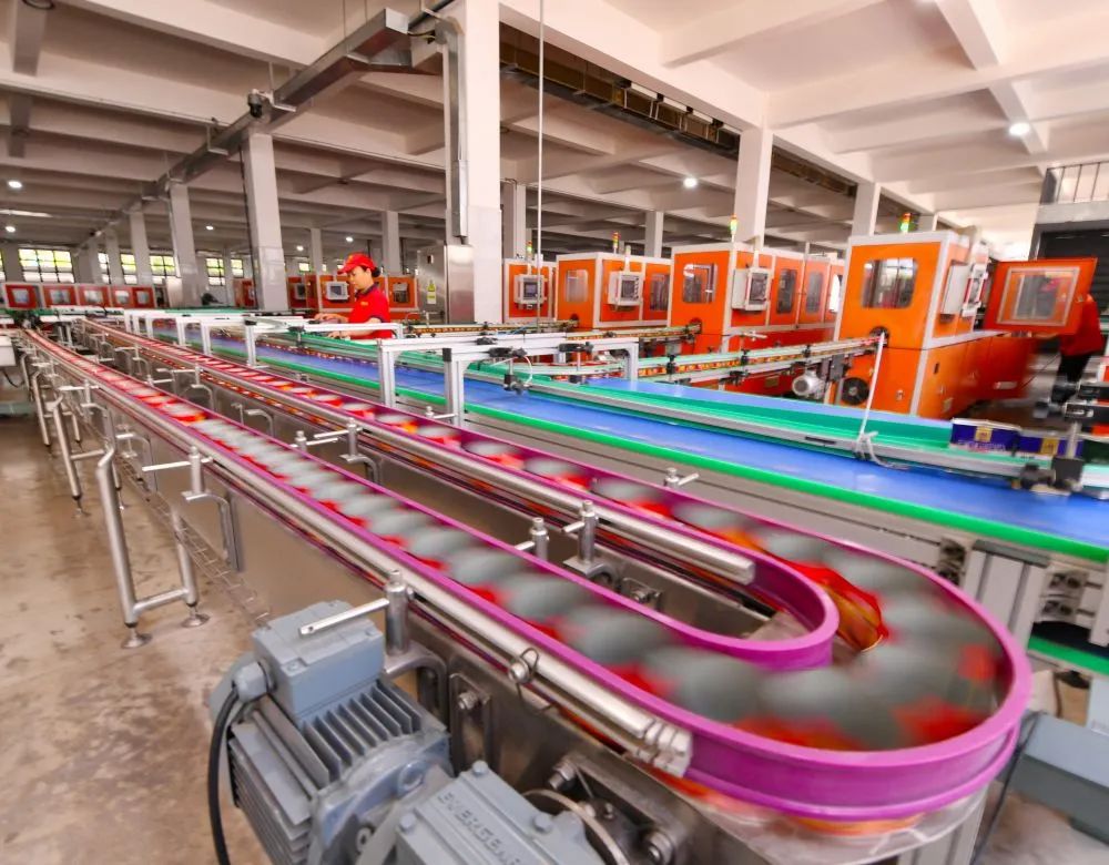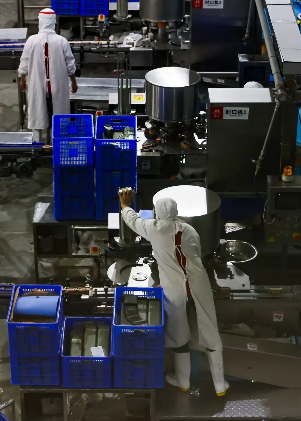 在四川美宁食品有限公司肉类罐头智能化加工基地,员工在罐头生产线工作。王祥宁 摄
