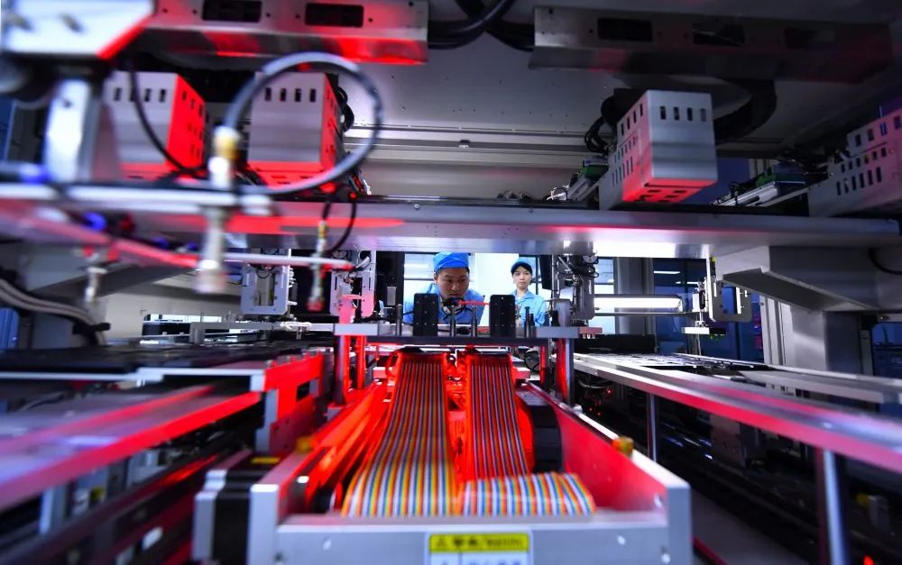 在四川上达电子有限公司,员工正检测柔性电路板生产线上检测产品。钟敏 摄