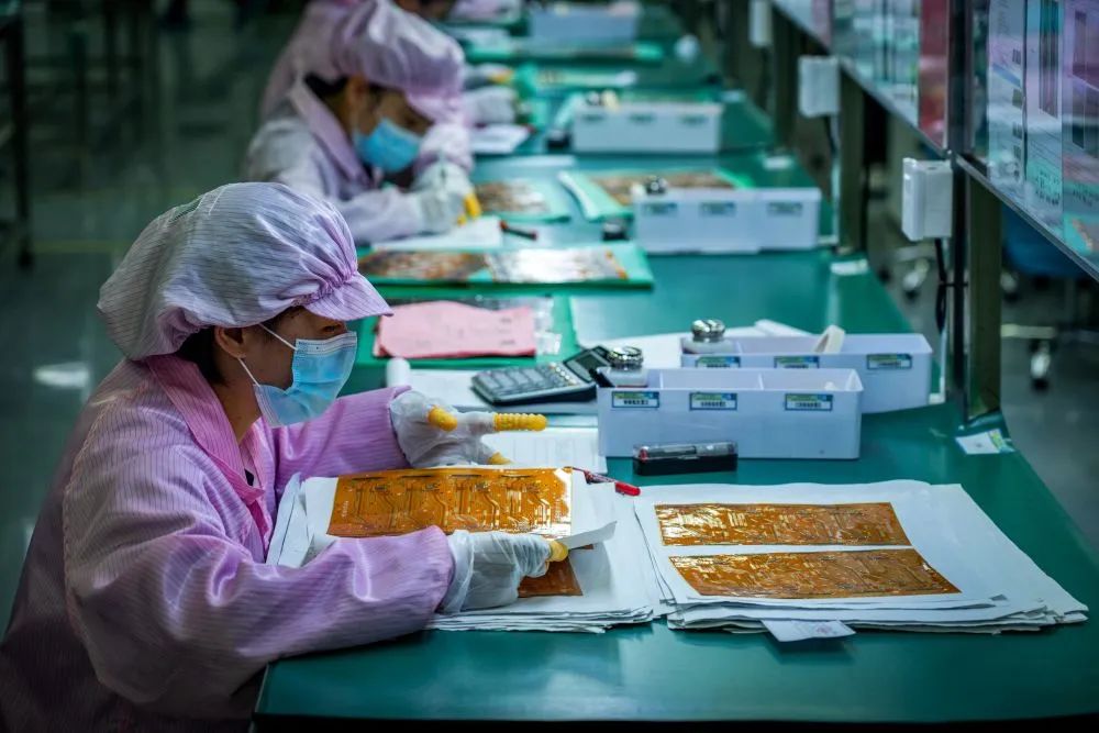 在四川上达电子有限公司,员工正在柔性电路板生产线上检测产品。刘岗 摄