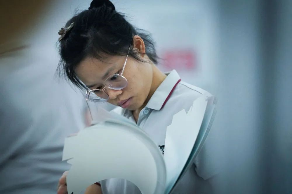 在遂宁宽窄印务有限责任公司,员工正在生产线上检查产品质量。宋靖 摄
