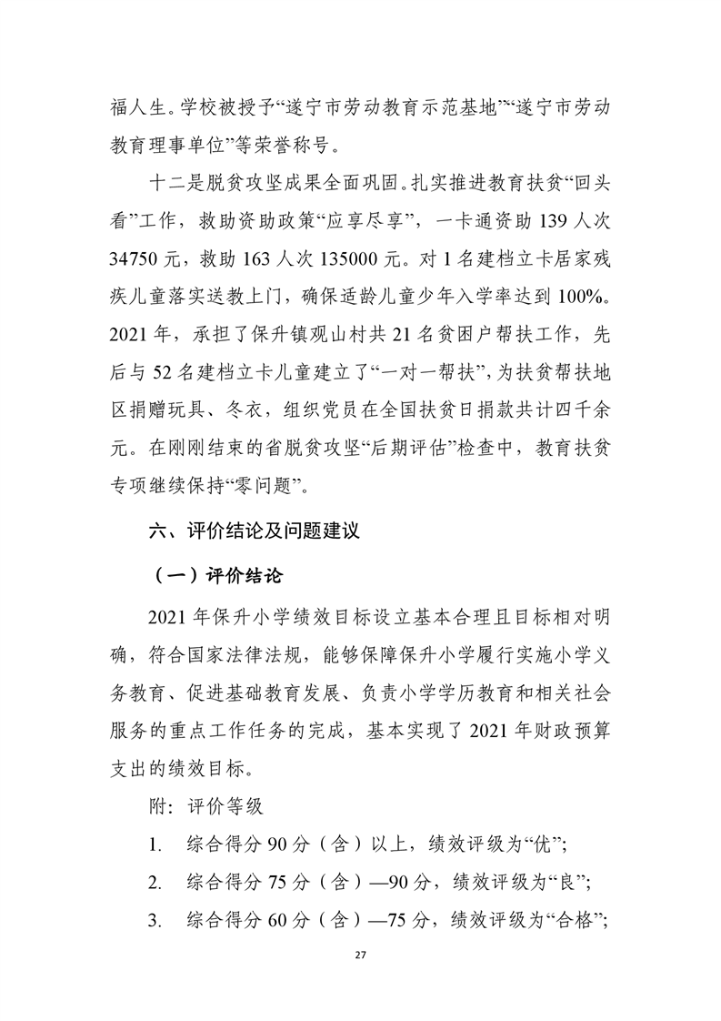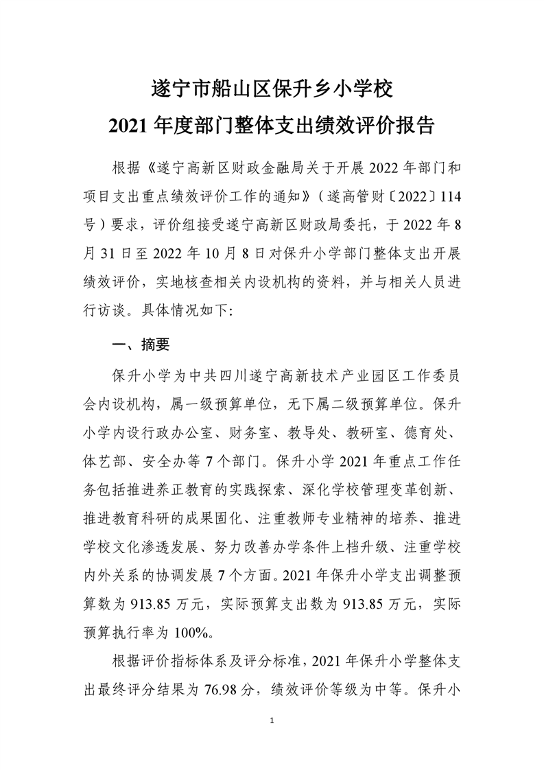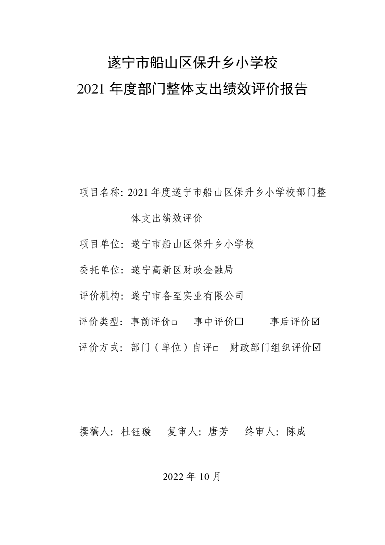 遂宁市船山区保升乡小学校2021年度部门整体支出绩效评价报告