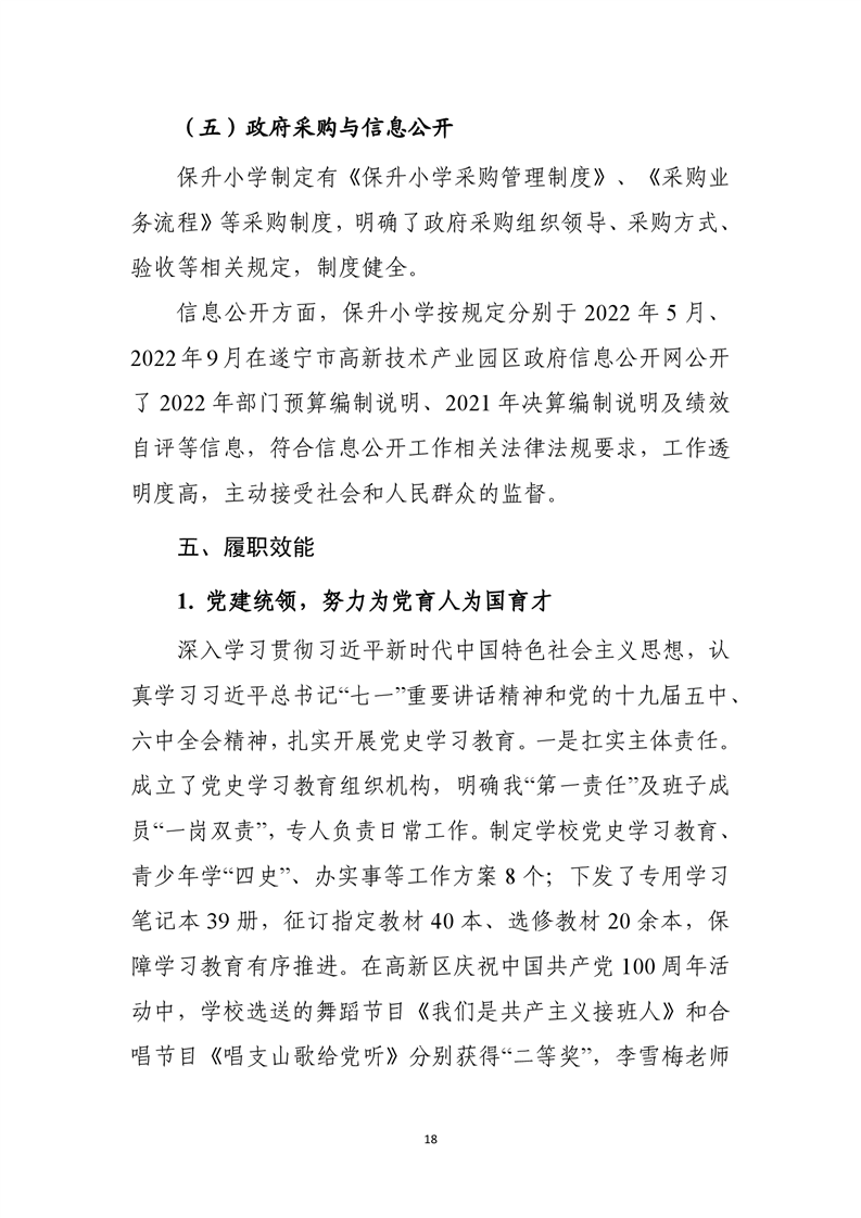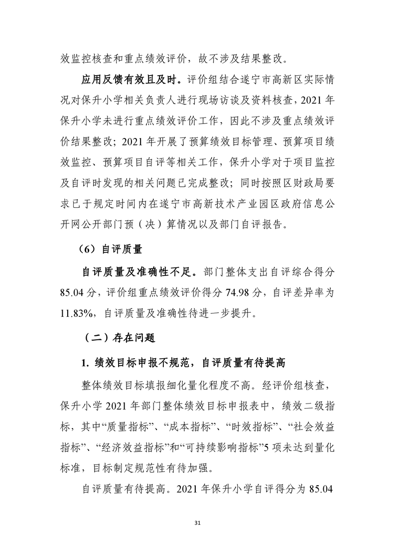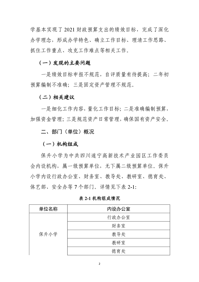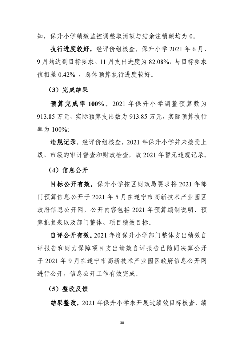 遂宁市船山区保升乡小学校2021年度部门整体支出绩效评价报告