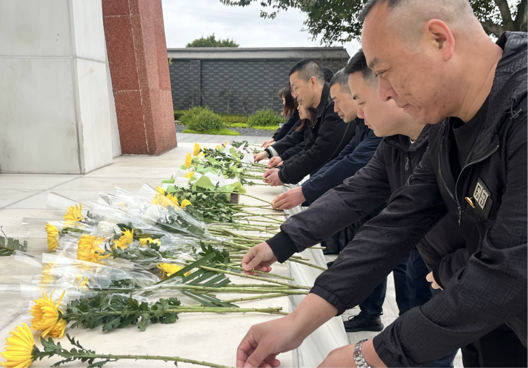 在《献花曲》的深情旋律中,两名退役军人代表缓步走向烈士纪念碑,向英烈敬献花篮。冉茂连副主任上前仔细整理缎带,全体人员依次向纪念碑鞠躬献花,朵朵鲜花寄托着对英烈的无限哀思。最后,全体人员绕行瞻仰纪念碑,重温革命先辈浴血奋战的英雄事迹。