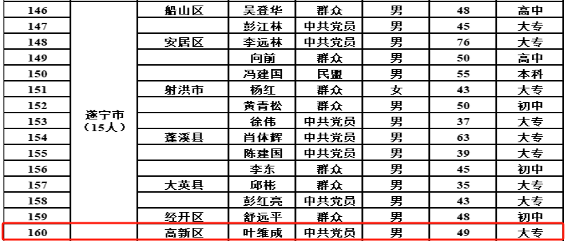1月12日,四川省农业农村厅对四川省农村致富带头人名单(第三批)进行公示,经个人申请、乡(镇)人民政府核实、县(市、区)农业农村部门审核、市(州)农业农村部门复核、农业农村厅审定后,拟认定四川省第三批农村致富带头人500名,公示期为1月12日至18日,遂宁高新区叶维成上榜。